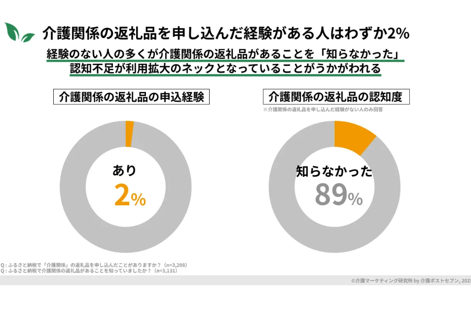 この調査から、介護食や紙おむつといった日々の消耗品もふるさと納税の返礼品として選べるにもかかわらず、その認知度の低さと、利用者の高い満足度という大きなギャップが明らかになりました。