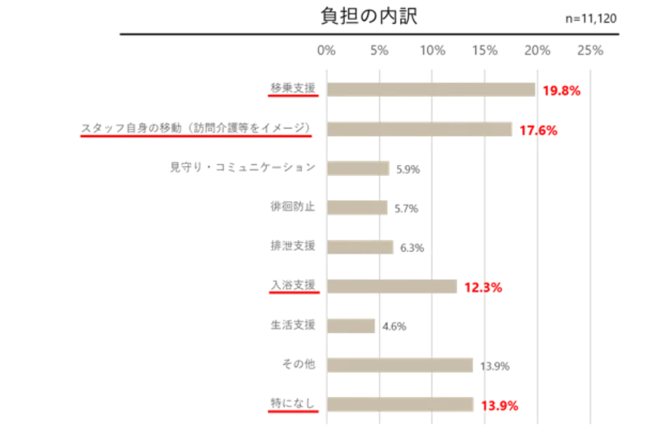 現場が最も負担に感じる業務:1位は「移乗支援」